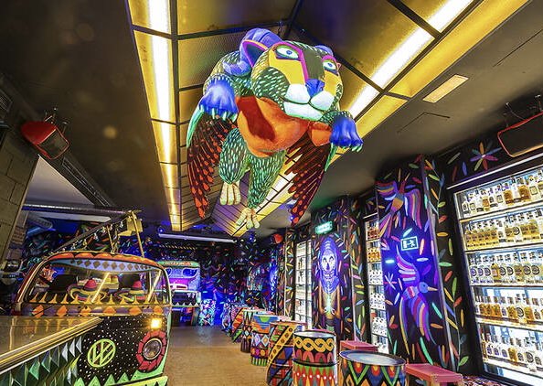 Cócteles que te sorprenderán, como la famosísima catrina o el gran dragón con los que se te hará la boca agua. Esto no es todo, se trata de un pub donde al mismo tiempo, podrás bailar la música más reciente mientras luces de neón e incluso, una autocaravana rodean el lugar.