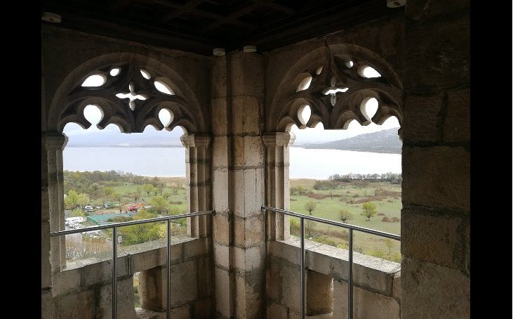 El Estrado de Damas es una impresionante sala que recrea una reunión social de mujeres con un decorado lleno de alfombras, cojines y esteras ambientada en el arte de los palacios andalusíes. La escalera de madera nos llevará hasta el dormitorio, el vestidor y el oratorio decorados con mobiliario y vestuario de la época. En lo alto del castillo podrás encontrar el mirador de Juan Guas desde el que se contempla el precioso embalse de Santillana. Se aprecia también la capilla privada y la torre del suroeste que contiene restos de la decoración original. La visita termina con la bajada de las extraordinarias escaleras de caracol que nos volverán a llevar al patio de armas.