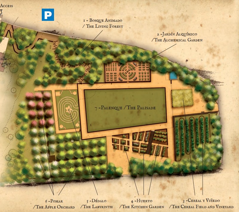 Por último, junto a la fortaleza, puedes disfrutar del Jardín de los Sentidos con un huerto para el cultivo de plantas medicinales e industriales, cultivos, huertas con cereales, vides y hortalizas y árboles como manzanos, cerezos, almendros y perales que recrean el jardín de frutales que tuvo el Duque del castillo y los espacios ajardinados de los que disponía. Además, el jardín cuenta con un laberinto y un palenque donde se realizan las actividades que reproducen los juegos y las justas de la época.