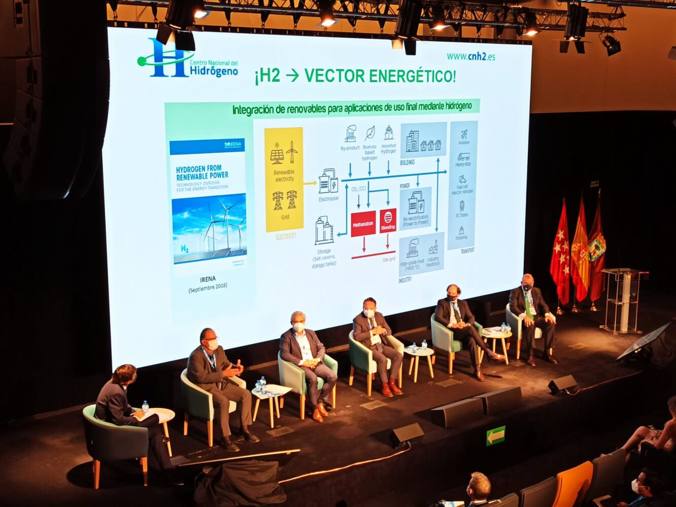 En una segunda mesa redonda que ha tratado los retos y oportunidades del despliegue del hidrógeno, los participantes han sido el subdirector de Hidrocarburos y Nuevos Combustibles del Ministerio para la Transición Ecológica y el Reto Demográfico, José Luis Cabo; el director del Instituto Universitario de Investigación del Automóvil (INSIA), José María López, y el director global de Hidrógeno de Iberdrola, Millán García-Tola. Representando a la industria fabricante han intervenido el director general de Solaris Bus Ibérica, Kepa Mendikute, y el director de Ventas Internacionales de CaetanoBus, Francisco José Ferreira. Para cerrar esta mesa, ha tomado la palabra el director de Servicios de Transporte de la EMT, Carlos Sierra.
