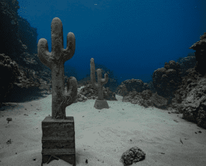 La artista suiza Claudia Comte reúne una serie de esculturas talladas con motosierra para la ocasión, en madera endémica encontrada en Jamaica, durante su residencia en el marco del programa interdisciplinario y colaborativo de TBA21–Academy y Alligator Head Foundation, en Port Antonio. Gracias a este programa, a sus investigaciones y a su pasión por los océanos, Comte ha comprendido que los corales desempeñan un papel fundamental en la producción del oxígeno de la Tierra y que su extinción puede ejercer un profundo impacto sobre la vida en nuestro planeta.