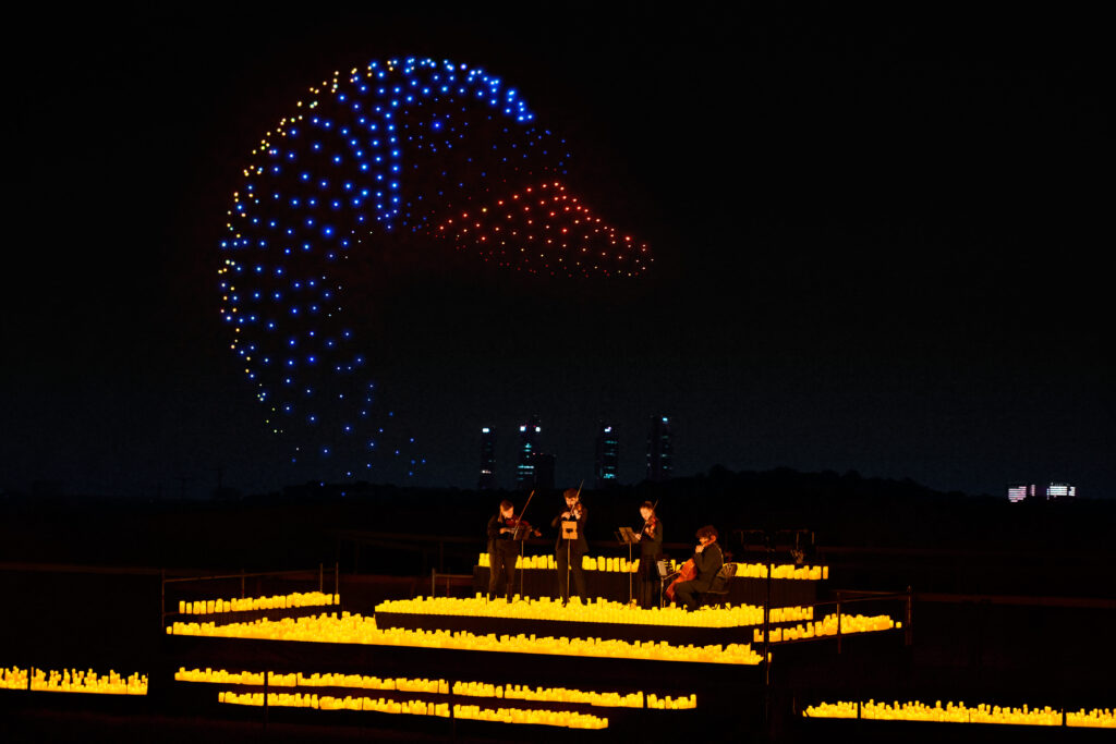 🌍 Tras vender más de 500.000 entradas en todo el mundo y después de dos exitosas ediciones en Madrid, DroneArt Show regresa para volver a iluminar el cielo. Al caer la noche, cientos de drones iluminados despegan y crean formas impresionantes en el cielo, moviéndose al ritmo de música clásica en vivo. Coreografiados a la perfección con la música, este concierto al aire libre pinta la noche con luz, color y asombro: un verdadero concierto en el cielo.