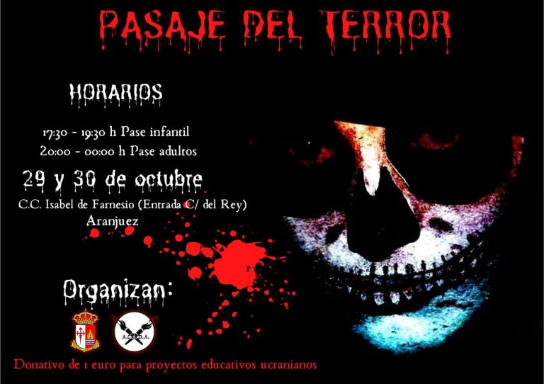 – Pasaje del Terror. Dirigido al público juvenil: A partir de 14 años (o de 12 años acompañados por un adulto). Sábado 29 de octubre desde las 20:00 a las 0:00 horas en la Casa de la Juventud de Algete.