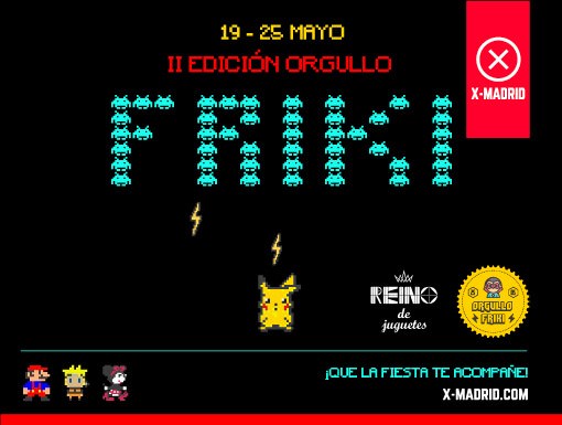 Después del éxito del año pasado en el que más de 170.000 personas disfrutaron de este original evento, el operador REINO de juguetes y X-Madrid han querido celebrar del 19 al 25 de mayo la II Edición del Orgullo Friki, una nueva edición en la que han incluido nuevas actuaciones, exhibiciones, increíbles decorados y nuevos concursos, como la celebración de los Drag X-Awards el primer concurso en el que se busca a la super estrella Drag de X-Madrid y que contará con Hugáceo Crujiente, participante de la primera edición del reality Drag Race; el campeonato de cubos de rubik organizado junto a la Asociación Madrileña de Speedcubing con un total de 100 participantes; la actuación de una orquesta sinfónica friki compuesta por 30 músicos que comparten además de su pasión por la música, su afición por el cine, los animes y los videojuegos.