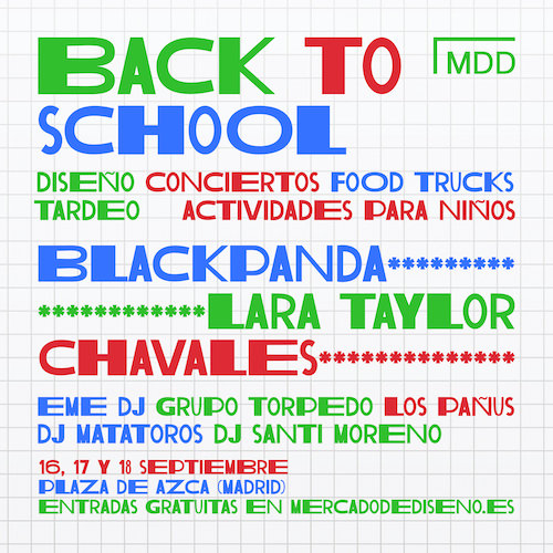 En la plaza de Azca también tendremos sesiones de tardeo de la mano de Torpedo y Los Pañus, así como DJ sets de Eme DJ, DJ Matatoros y Santi Moreno, que se encargarán de hacerte bailar sin parar todo el fin de semana. Y todo esto ¡gratis! ¿Necesitas más motivos para sacar ya mismo tus entradas para Back to School? Consíguelas ya en la web de Mercado de Diseño.