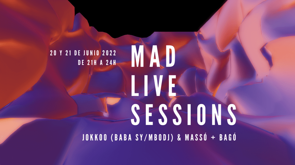 MAD, Madrid Artes Digitales celebra el día Europeo de la Música con una innovadora propuesta audiovisual con música. MAD LIVE SESSIONS, una experiencia única donde los 300 asistentes que lleguen cada uno de los dos días podrán disfrutar de 3 horas en las que la Nave 16 de Matadero fusionará la mejor música electrónica de la mano del colectivo Jokkoo y proyecciones inmersivas generadas a tiempo real por los artistas visuales Jordi Massó y Marcel Bago.
