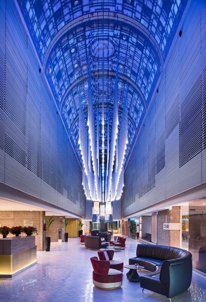 El hotel alberga también uno de los mayores centros de convenciones de la ciudad, así que somos un complejo ideal para huéspedes ejecutivos. Este está compuesto por 32 salas multifuncionales de última generación, un sistema de telepresencia que permite la comunicación de audio y vídeo de alta calidad entre todos los participantes físicamente en la reunión y los que se conectan de forma remota, una bóveda con la pantalla LED más grande de un hotel en Europa. Estos servicios convierten al hotel en pionero en el sector gracias a su apuesta por el futuro y la innovación.