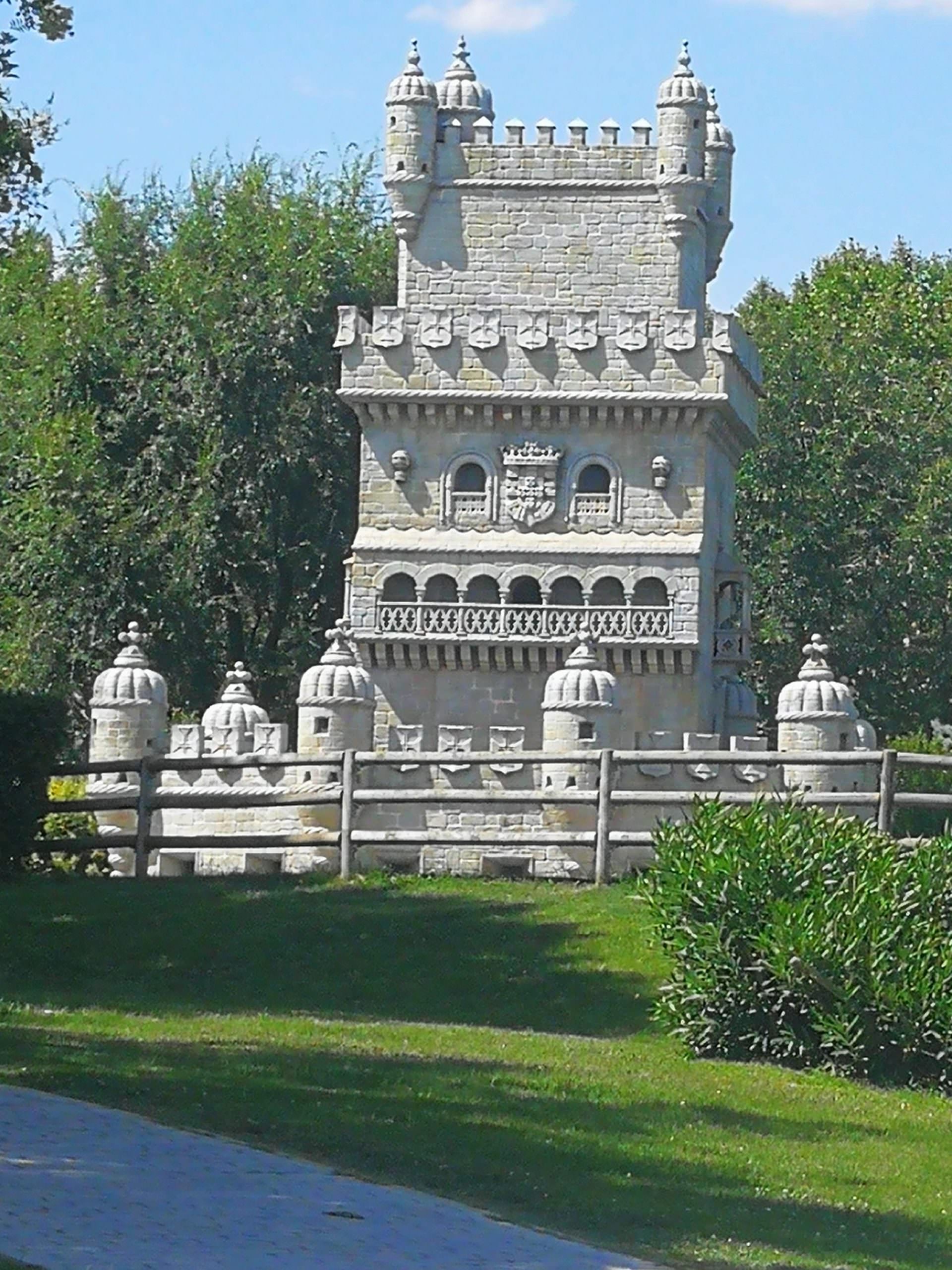 La Torre de Belém está en la desembocadura del río Tajo en Lisboa, Portugal. La original mide 35 metros y tiene cuatro plantas y un mirador, pero la réplica está a una escala de 1:3. Personalmente, aunque creo que todos los monumentos están magistralmente construidos, cuando recuerdo mi viaje a Lisboa y me veo pasando allí, con la música de fondo, la pasarela que conduce hasta ella y la belleza e inmensidad del Tajo, la réplica de Parque Europa se me queda corta…
