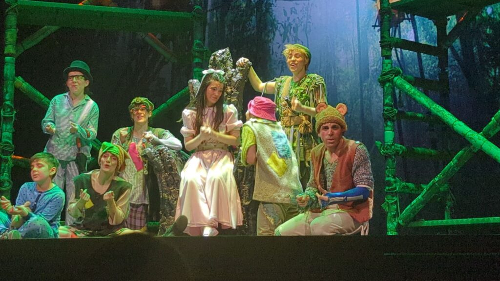 Nos sumergiremos en el mundo de los ingeniosos niños perdidos, con sus instrumentos y juegos, en el fondo del océano para conocer a las sirenas, o en el lumínico campamento de los indios, donde nos deleitarán con sus bailes.