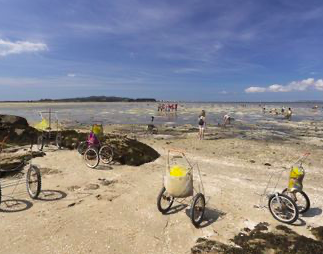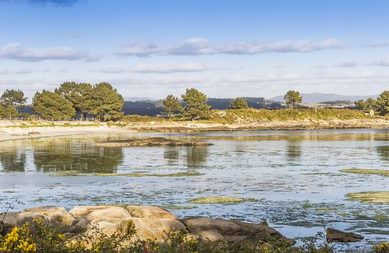Las playas en general son de arena blanca y fina, de suave pendiente, las que dan a la zona de la marisma, aunque quedan en seco cuando baja la marea, son ideales para los niños, no cubre y no hay corrientes, los árboles llegan hasta la mismísima playa.