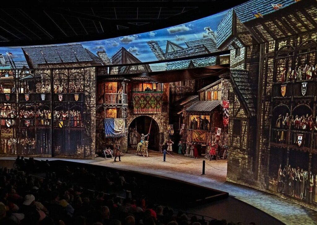 El Último Cantar es una propuesta épica que narra la historia del Cid Campeador. Emociónate con las aventuras de este noble Caballero en un anfiteatro único, en el que las butacas van girando alrededor de un escenario 360º mientras asistes a las luchas contra los invasores musulmanes, las audiencias con los reyes, e incluso ves al Cid casarse o exhalar su último suspiro en las playas de Valencia. Una puesta en escena inmersiva y única en el mundo, para vivir en primera persona la historia del mismísimo Rodrigo Díaz de Vivar.