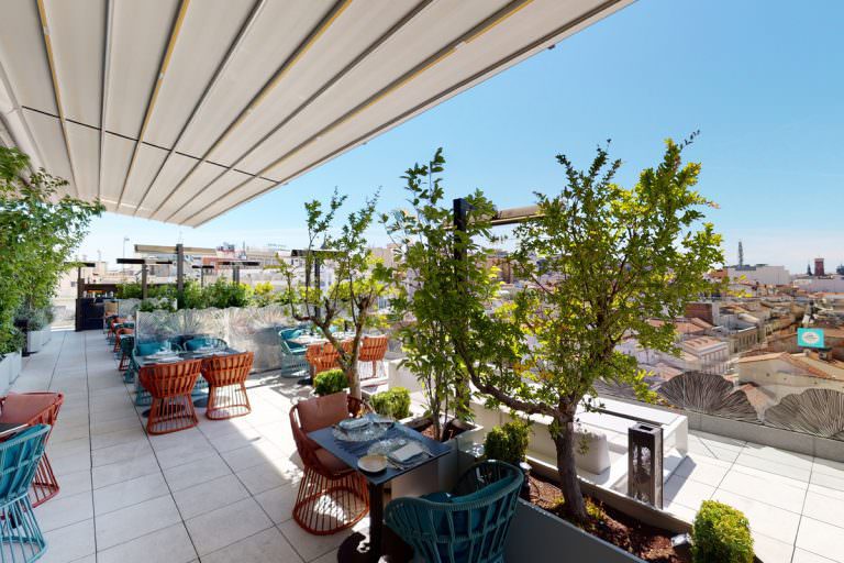Observar el paisaje de Madrid siempre es una opción brillante. Gingo Sky Bar te posibilita esta opción con sus impresionantes vistas 360º de la ciudad. Se trata de un restaurante con terraza donde podrás disfrutar de un nuevo concepto gastronómico donde se mezcla la comida asiática y española. El precio es muy variado y este espectacular establecimiento se encuentra situado en la Plaza de España. Y, si eres amante de disfrutar de un buen atardecer copa en mano, no te pierdas nuestro post de terrazas imprescindibles en Madrid