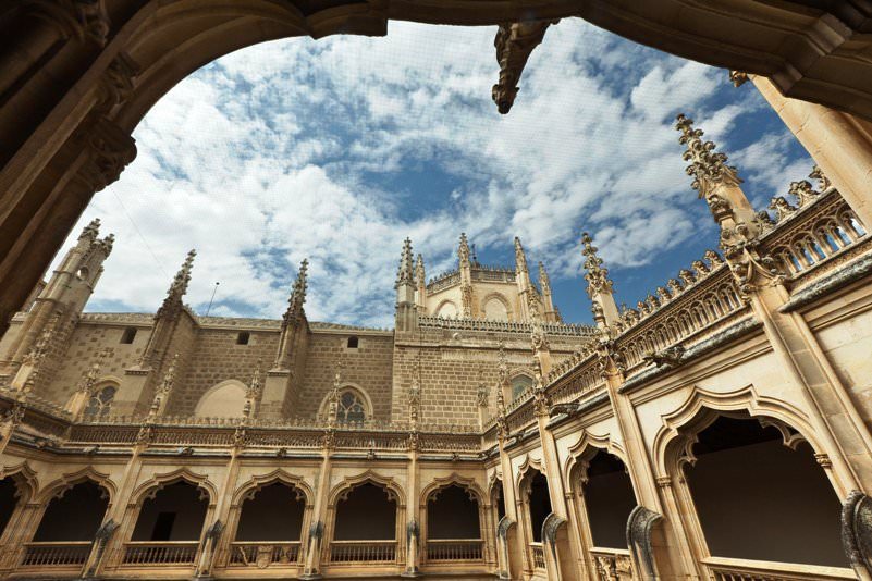 La otra Sinagoga relevante es la Santa María La Blanca, que se encuentra a unos pasos en línea recta desde la Sinagoga del Tránsito. Es increíble entrar a este emblemático sitio y ver a primera vista sus paredes blancas y los numerosos arcos de herradura que dan un toque muy especial a esta sinagoga. Subiendo por la misma calle, veréis el Monasterio de San Juan de los Reyes, edificado por orden de los Reyes Católicos. De estilo gótico isabelino, merece la pena observar su espectacular claustro de dos pisos, que rodea al patio interior y que está repleto de figuras decorativas.