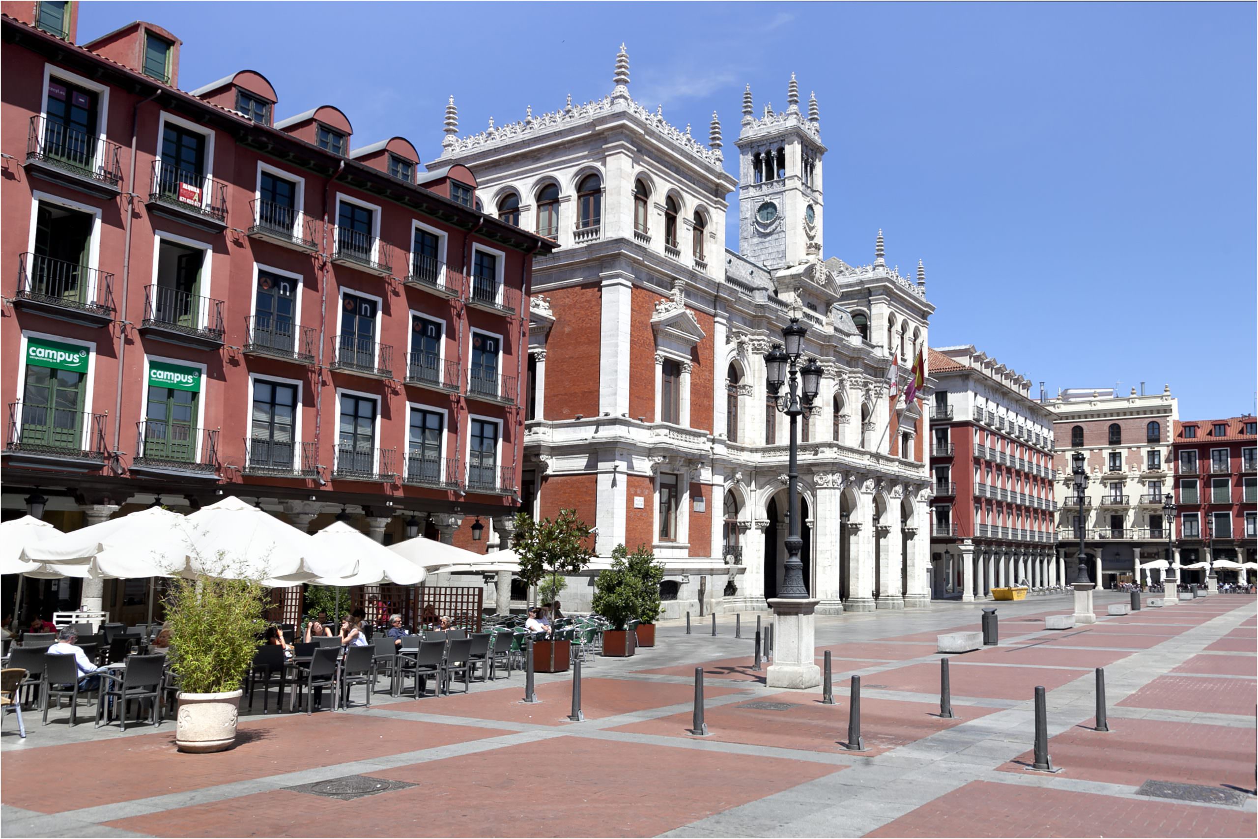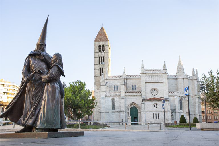 Si continuas por la calle Platerías, alcanzarás la Iglesia de la Vera Cruz, sede de la cofradía más antigua de la Semana Santa de Valladolid que atesora un conjunto muy valioso de esculturas de madera del siglo XVI. La siguiente parada es la plaza de Portugalete, desde donde se puede visitar la Catedral, junto a la estatua de Cervantes, la iglesia románica de la Antigua y observar la fachada de la Universidad, aunque ¡con cuidado!, porque dice la leyenda que si cuentas todos los leones que la custodian nunca terminarás los estudios.