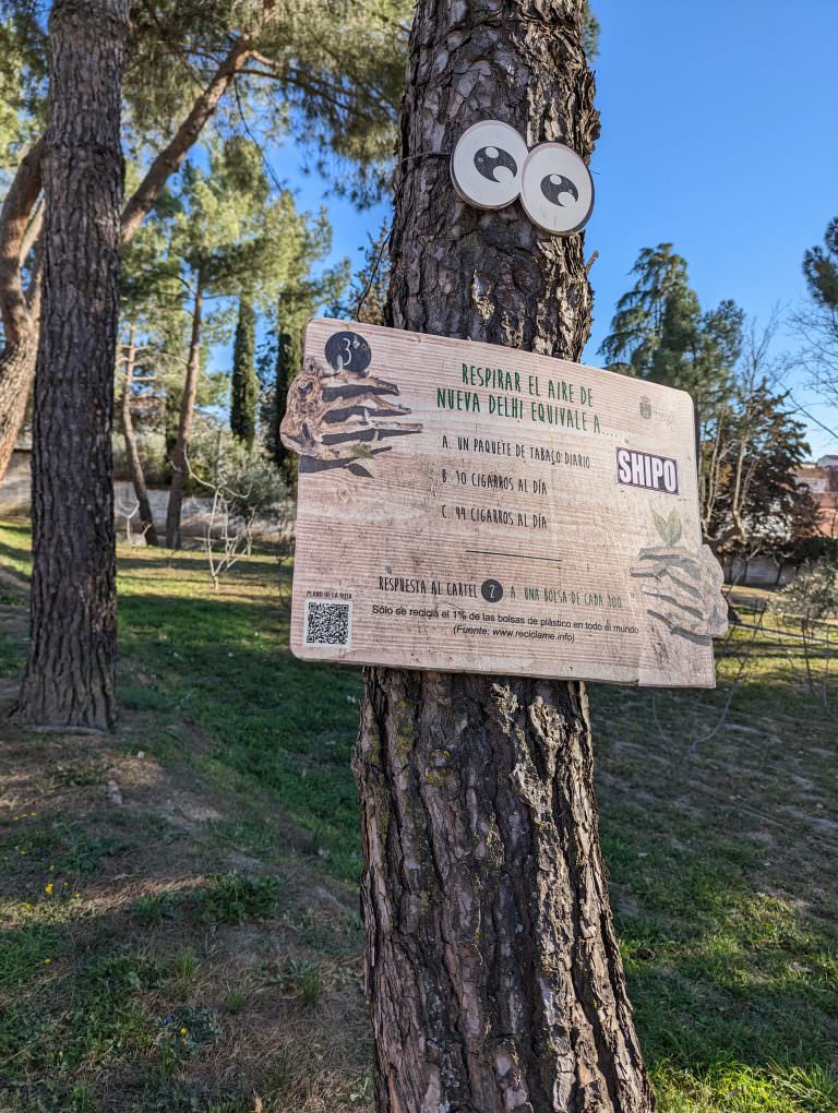 «Los árboles hablan» es una ruta turística medioambiental que no puedes perderte. A través de los distintos carteles colocados en 30 árboles que siguen un orden numérico, se plantean preguntas medioambientales con tres posibles respuestas. El objetivo es encontrar la respuesta correcta que aparecerá en el siguiente árbol, mientras se descubren curiosidades medioambientales que harán recapacitar y aprender a cuidar nuestro entorno. ¿Quién acertará más respuestas?….