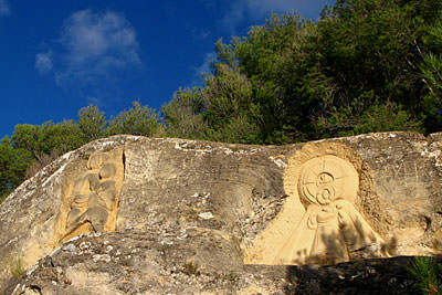 Un día del año 1992 a Eulogio Reguillo y Jorge Juan Maldonado se les ocurrió de manera gratuita y para ellos solos tallar conjuntamente en la piedra arenisca caliza una cara, a la que mas adelante llamarán La Monja por que en el torso de la cara podemos ver el habito que suelen llevar las monjas, en la actualidad encontraremos una veintena de esculturas talladas desde el mencionado año 1992 hasta la actualidad, ya que siguen esculpiendo los dos autores.