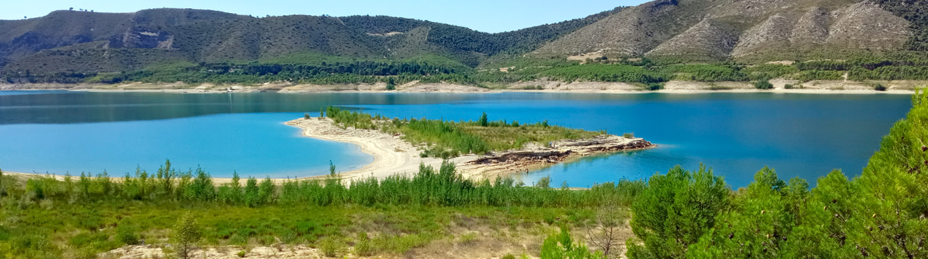 El paisaje con el que os encontraréis está formado por terreno llano de cultivo y olivares hasta las mismas caras; y en la zona de esculturas el terreno de labor termina convirtiéndose en pinares y peñas de roca arenisca que llegan a la orilla del pantano.