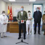 Durante la visita al Centro de Salud Almendrales, Ruiz Escudero ha agradecido a todos los profesionales de los centros de salud, consultorios locales, servicios de Atención Rural y servicios centrales de la Gerencia Asistencial de Atención Primaria el gran trabajo que vienen desarrollando desde el inicio de la pandemia en el control, diagnóstico y seguimiento de los pacientes con COVID-19, y especialmente en la actual fase de prevención de la enfermedad mediante la vacunación.