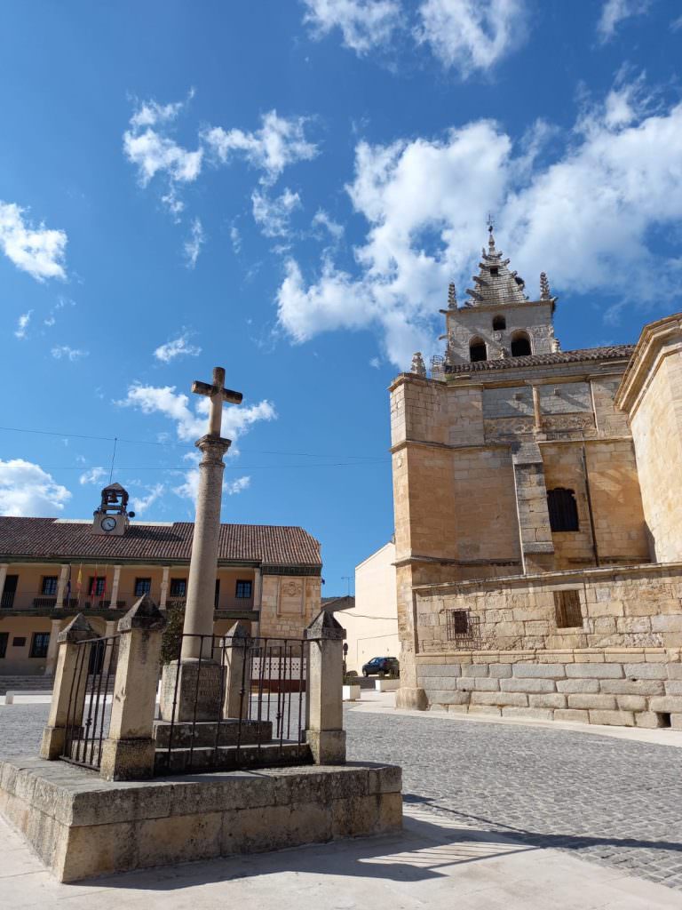 Es el centro dinamizador del pueblo al albergar en él cuatro de los espacios más representativos de la localidad: ayuntamiento, Iglesia, Convento, Cruz. Es de estilo castellano y su característica principal se encuentra en sus laterales, pues, configuran un espacio porticado. Este espacio tan característico atrae a turistas, pero también ha inspirado a muchos artistas del país, quiénes la han utilizado como escenario para películas, entre ellos “Todos lo saben” de Pedro Almodóvar o “Historia lamentable” de Javier Fresser.