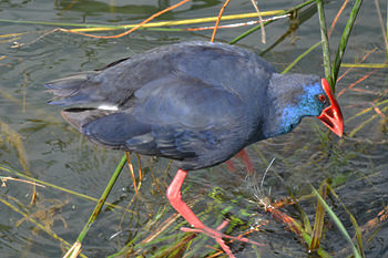 Es entre la densa vegetación de lagunas y graveras, donde un ave singular, el calamón, aparece ante nuestros ojos, luciendo su espectacular plumaje azul metálico en contraste con su grueso pico y robustas patas rojas.