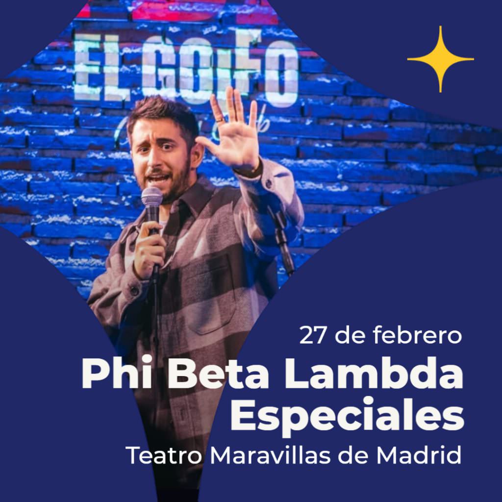 La hermandad secreta del standup te lleva al teatro. Después de más de cuatro años grabando comedia y con más de 200 monólogos a sus espaldas, Phi Beta Lambda, el canal de standup en castellano más importante y famoso de Youtube, te invita a: “Phi Beta Lambda Especiales”. Una noche donde los mejores cómicos y cómicas del canal, actuarán en una noche llena de sorpresas. Tocamos el cuerno de Gondor porque, queridas phienas, habrá asado. Presentado por Jorge Yorya.